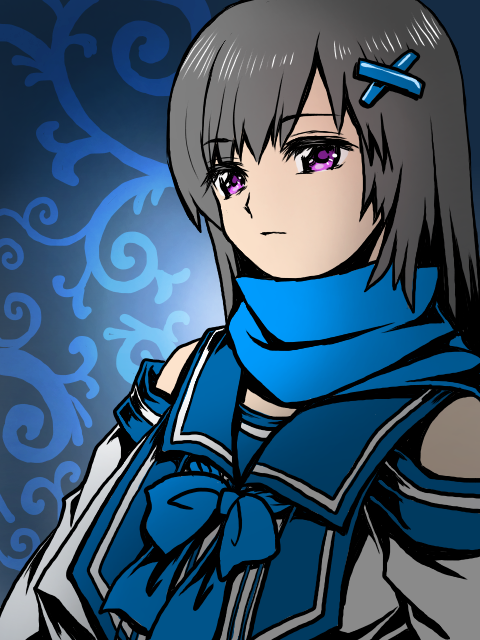 肌の色、目の紫色(赤+青)がある程度には色を持っている。