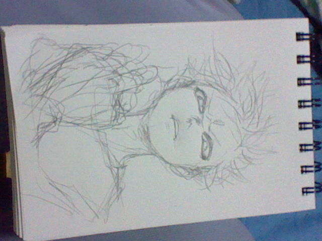 100均の、小さいクロッキー帳にザクザク描いたラフをカメラで撮影、それをコミック工房にシールで貼り付けて、下絵として使って描き描き♪