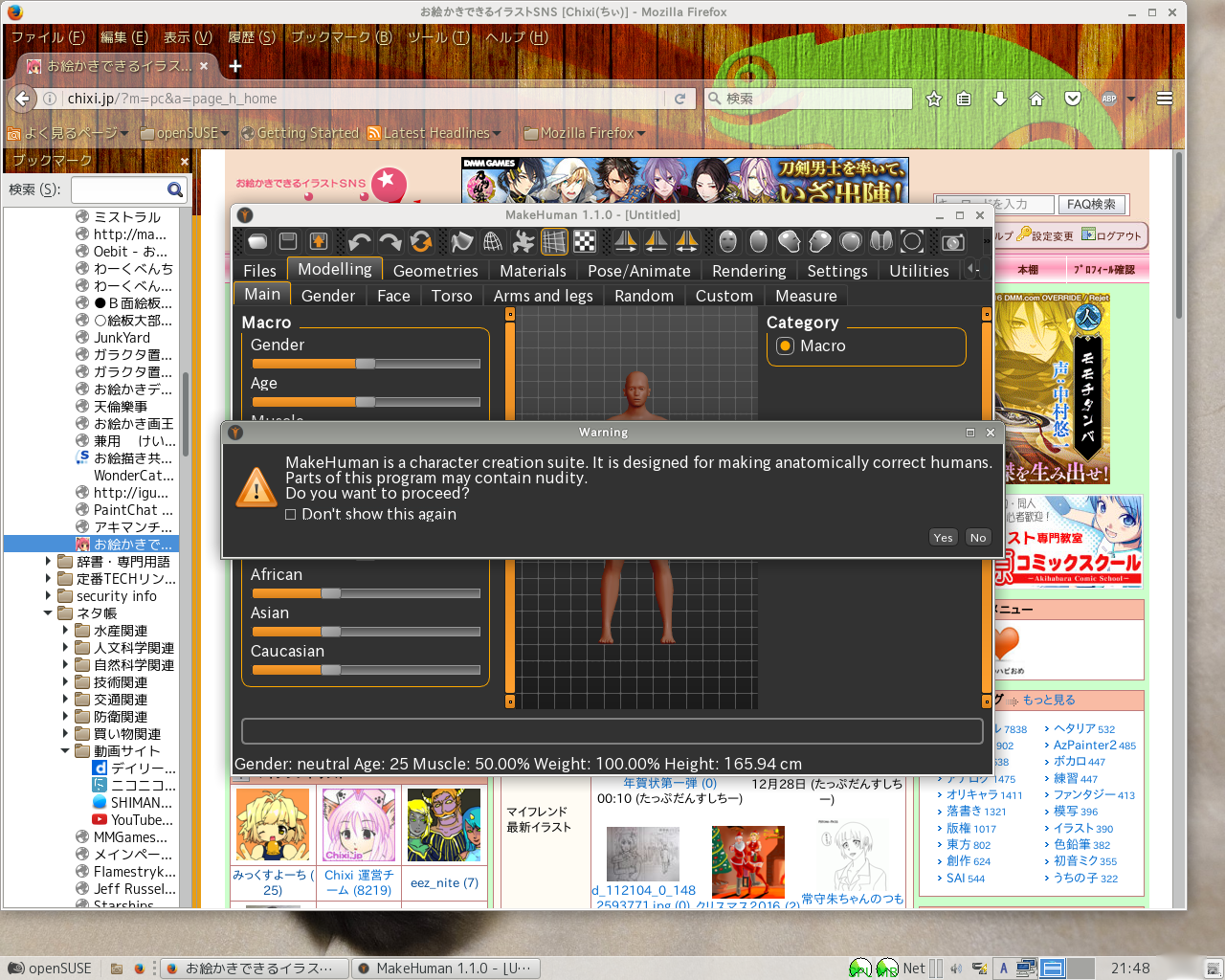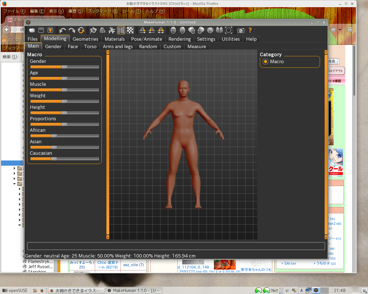 openSUSEや、debian9なんかのリポジトリを物色していると、グラフィックカテゴリ(openSUSEでは、obs*のグラフィックカテゴリ)の中に、makehumanなるパッケージが収まってました。