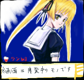 お題なかったので、ギャルゲ画面風に仕上げてみる。金髪ツインテといえば、やはりツンデレでしょう。