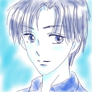 ねる前に落書きをしてみた!青でかいたら元気のない兄さんになってもうただ ~(汗)
