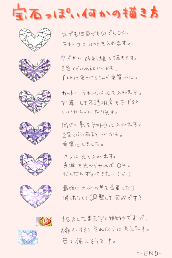 トランプ企画でもにょもにょ描いていた宝石の描き方メモです。