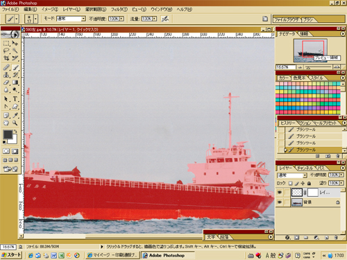 今回のお仕事は曇ってるせいで色味の差が少なくって、どう選択範囲かけても上手く選択出来ず…しゃーないのでマウスでぽちぽちクイックマスク作業してます…。