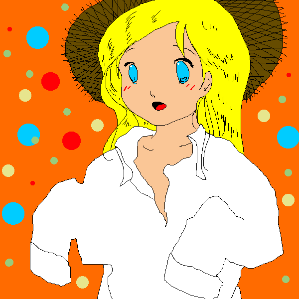 魔女っぽい格好しようとして、帽子は麦わら・大きなシャツでローブの代わり・