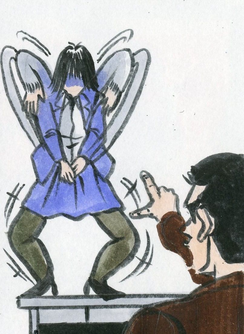 立たされ、男性社員の前で、10回に