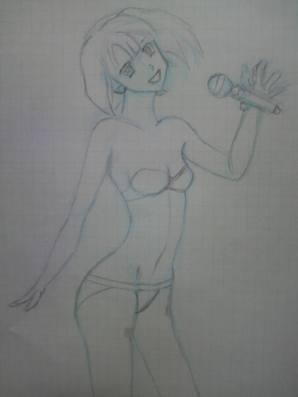 久しぶりに、水色の色鉛筆であたりを取り、そこへシャーペンBを使いラフを描いてみました。