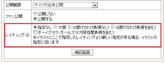 このガイドラインに従って投稿する際、日記やイラストではレイティング指定を投稿時に指定していただいています。