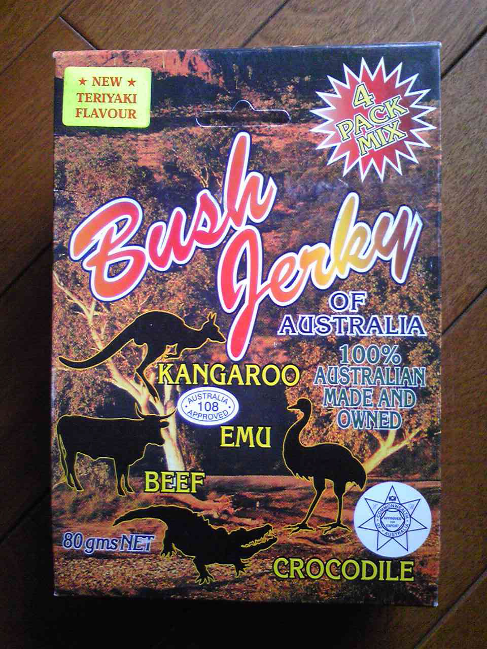 おみやげに「カンガルー、クロコダイル、エミュ(ミニダチョウ)、ビーフ」のジャーキーをもらったが、
