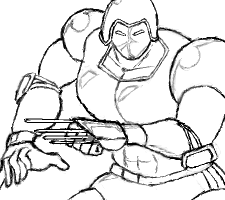 昨日から始めた、アニメ版Warsman、2回目。主線ざっと塗りから、仕上げて・・・