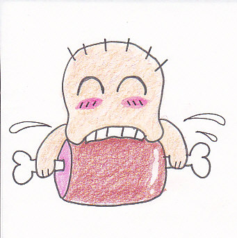 もっと勢いのあるワイルド系にしたかったんだけど、肉にかぶりつく口元がよくわからず、ニコニコさせて誤魔化しちゃった。てへ。