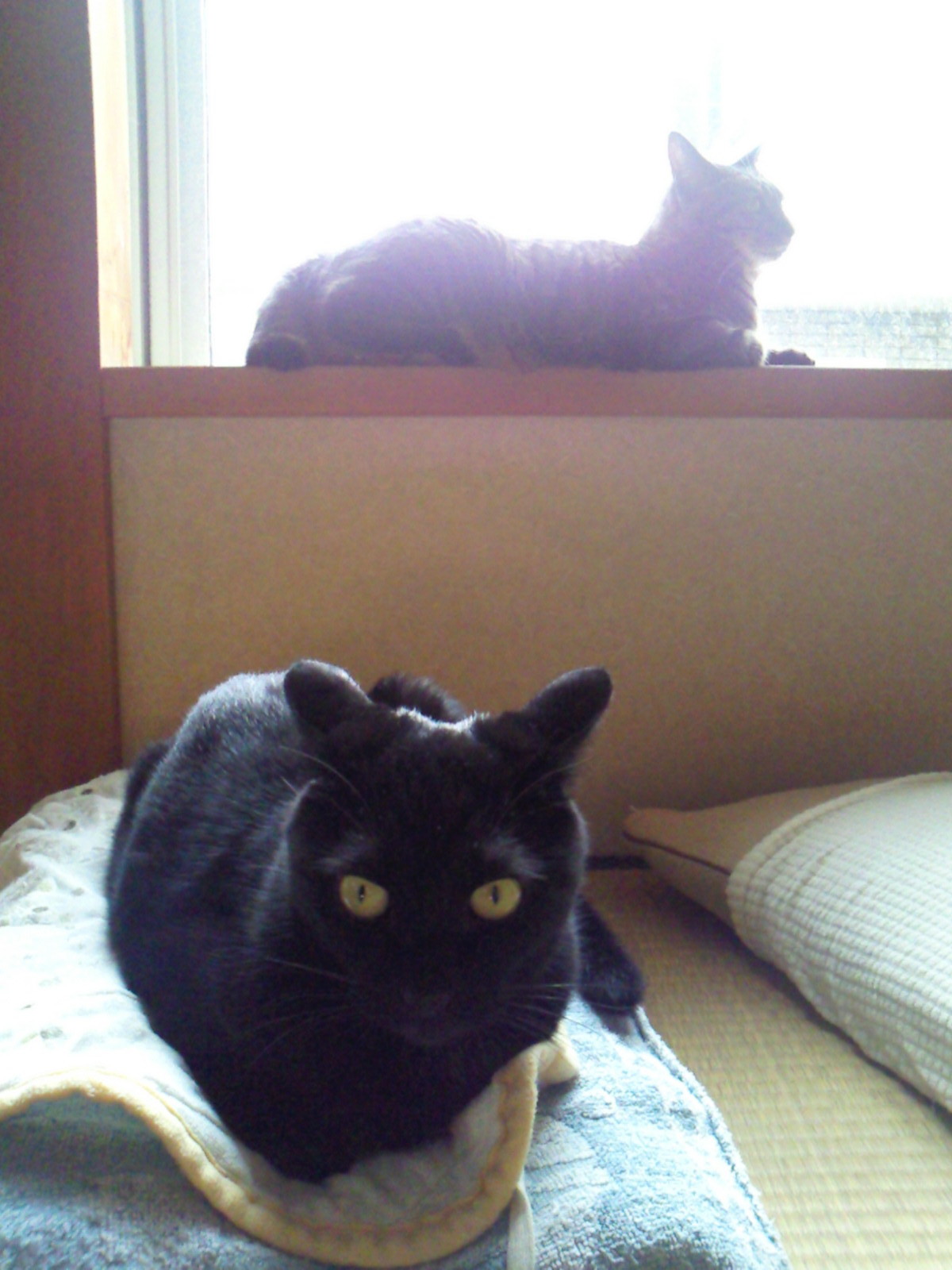 ぬこ二匹は、それぞれお気に入りの場所でひなたぼっこ………