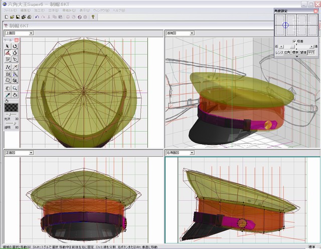 この後、テクスチャといって、帽子の表面に今は直接色を指定していますが、1枚の展開した図に、色や質感、細かい模様などを描き込んで本物っぽくしていきます。……多分、そこでまた手間取りそうです。