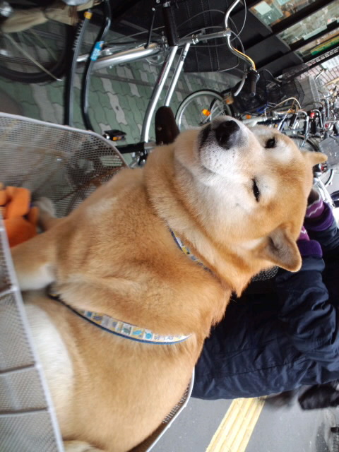 ん~何か用かワン? …昨日昼休み中に見かけたワンちゃん♪ スーパーの外で自転車カゴの上でご主人を待つ… 人が覗いてもチラ見する程度(笑) その姿写真カシャ! wink顔な犬完成♪