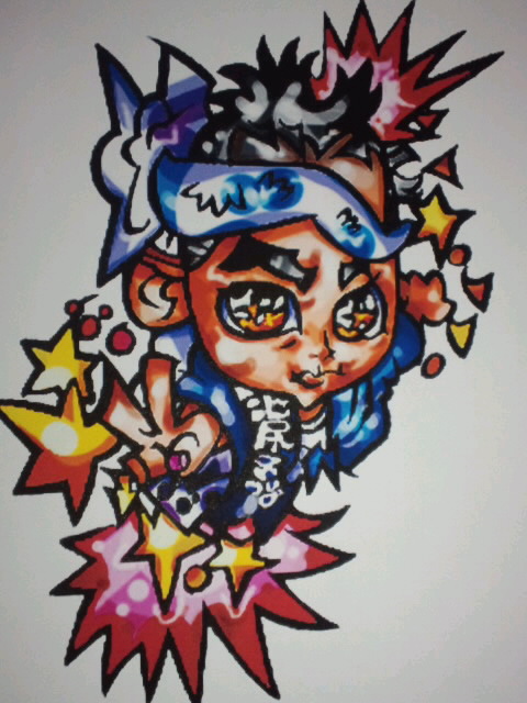 頼まれイラスト息子くんパート2 …昨日載せた頼まれ似顔絵風イラスト~○○さんの息子くんパート2 描いてたら必殺技してるみたいに仕上がっちゃった(笑)