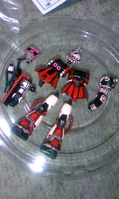 日清ミニガンプラ~赤いあの機体 …日清カップヌードルとガンダムコラボのミニガンプラ2体目塗り塗りは赤いあの機体(笑) ただ塗るのは面白くないと思い~最初濃いピンク塗っていたのを明るいピンクに変更~ 明日は完成した○○専用ザクを載せちゃいます!(笑) お楽しみに(笑)