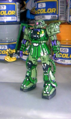 日清ミニガンプラ~量産型ザク♪ …日清ミニガンプラ塗り塗り4体目 量産型ザク♪ シャアザクとの区別化で少し配色変えてま~す♪