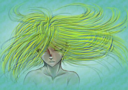 線画を肌のベースに乗せ込んで擦って、融合を試みる実験に、古いキャラを持ってきてそんなことを考えてたら、ワカメ王子になっちゃったわけです・・・