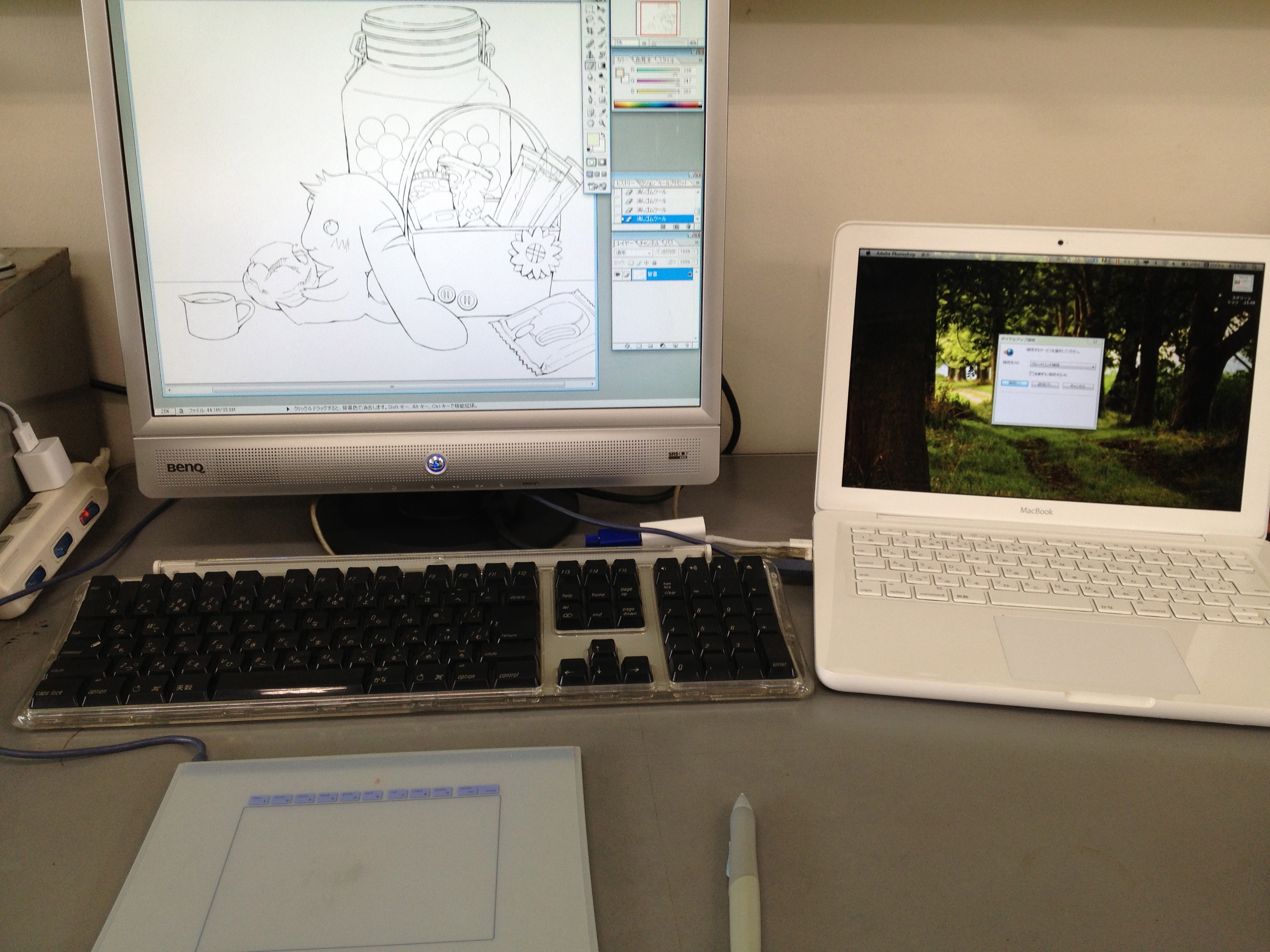 MacBookに外付けモニターという以前皆様に頂いたアドバイスを実行してみました。
