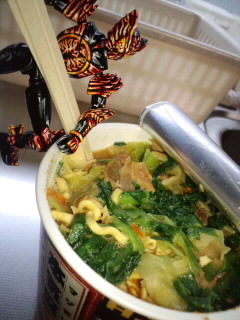 カップめん豚骨カレーラーメン♪ 普通にウマいカレー