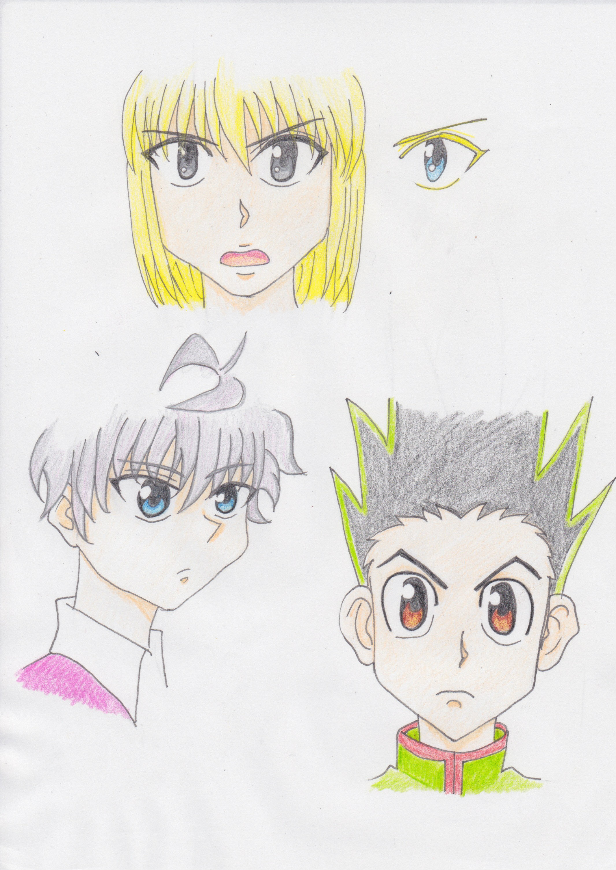 新しいほうの『HUNTER×HUNTER』を模写ってみました 。 上がクラピカ、右下がゴン、左下がキルア。 テレ ビ画面を携帯でパシャリして、それを見て描きました