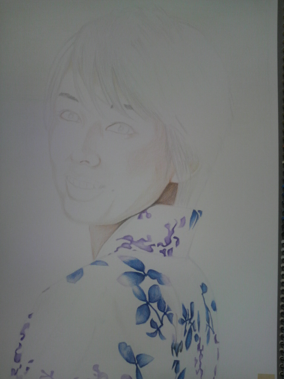 吉瀬美智子さん色鉛筆メイキング-END 残すとこ ろは、髪の毛とバックの塗りになりましたが・・・ 髪の毛にいたっては、塗り方というか描き方がまたま