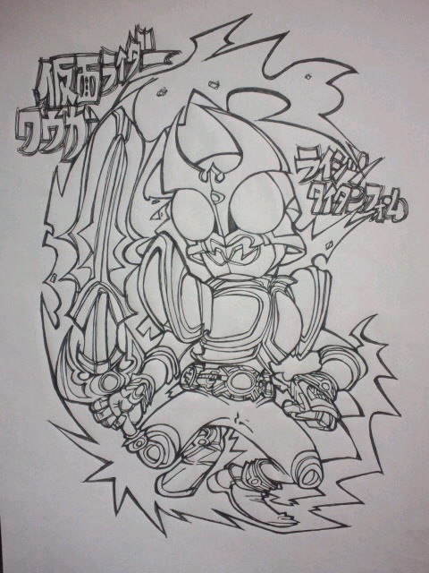昔描いた仮面ライダーアギトバーニングフォームのイ ラスト♪ アギトは最終フォームよりこっちのほうが好 み♪