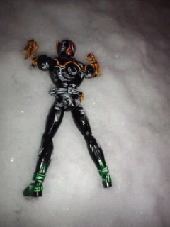 雪だぁ~オーズ君(笑) …東京でも雪がいっぱい降って きて積もってきたので思わず、家のオーズ君をモデル に写真カシャ!(笑)