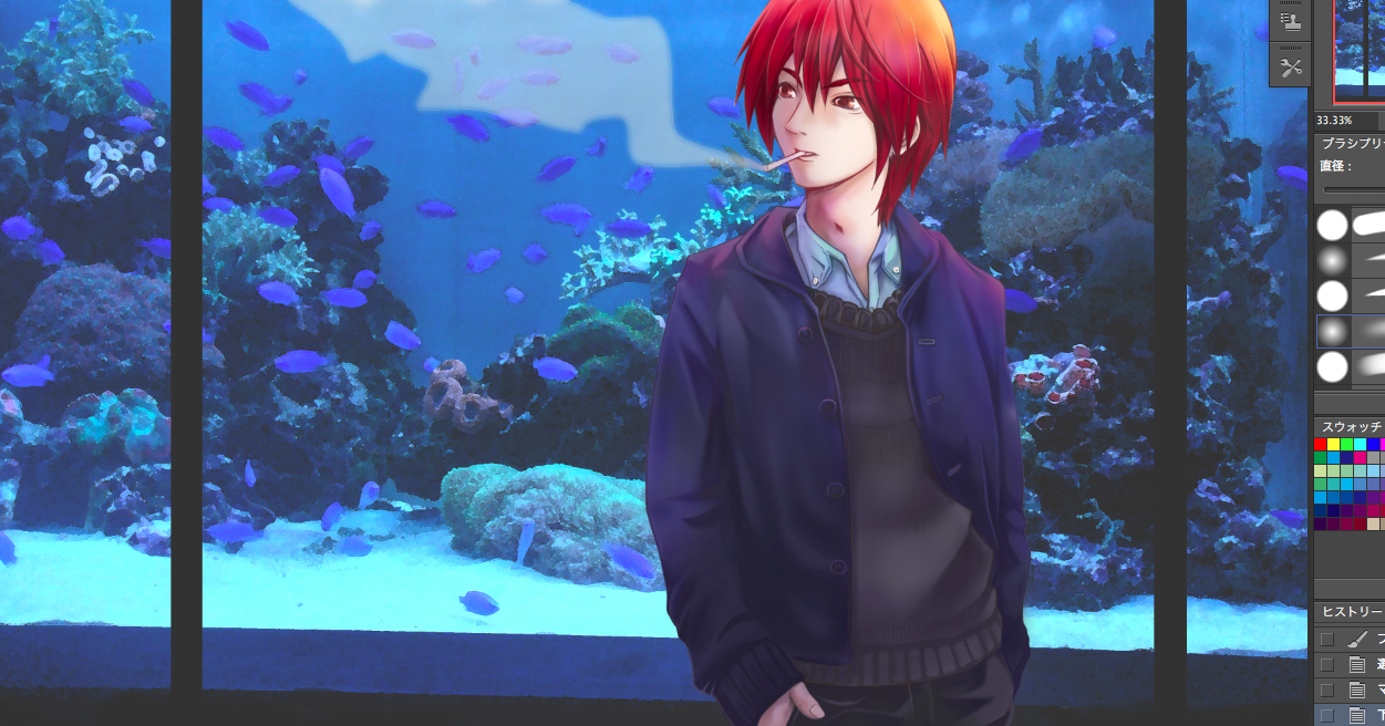 ぼくはアナログでは日本画なんかを描いていて、アマ チュアの公募展に応募したりしてるんですね。 そん なぼくの日本画の先生は「一枚の絵を描くために、下