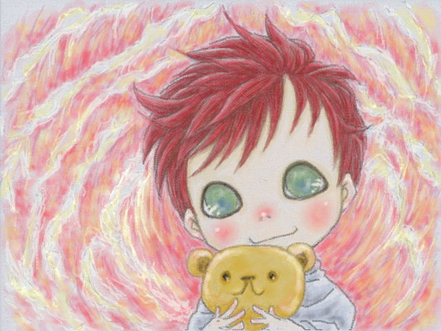 昨日、幻影の中の我愛羅を描いたら、もっと描きたく なったんですよ、日頃からわたしが描く我愛羅は妄想 ですし、幼児姿も節操なく描いているから今更なんで